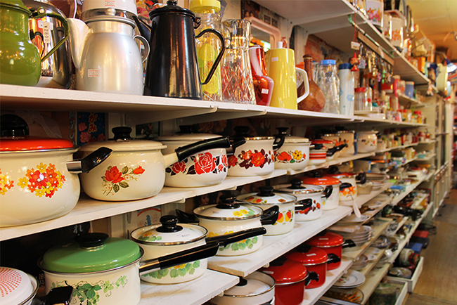 This select shop sells retro style furniture, and items from the Showa Period (1926~1989). The place is filled with pretty things, from large pieces like furniture, lamps, and electronics, to plates and toys. In particular, the wide variety of dishes and cooking tools with cute flower patterns and colorful designs will add spice to your cooking time.